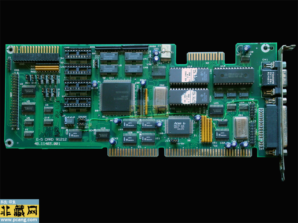 Acer E5(基于ATI 28800-5芯片的ISA显卡)是一款1980年代末至1990年代初推出的8位ISA接口显卡,专为IBM